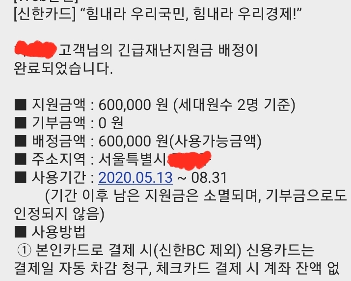 긴급재난지원금 사용기한이 신청한날부터 되어 있는걸 보니 바로 사용이 가능한 듯 합니다. 이토록 빨리 되다니 기대 이상이네요.