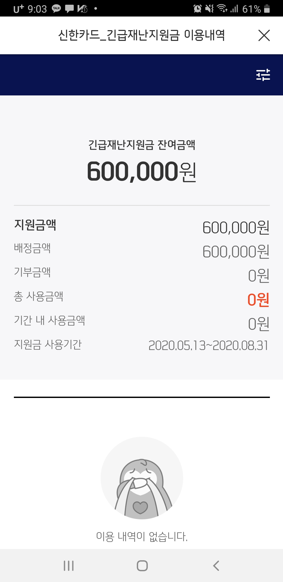 긴급재난지원금 사용기한이 신청한날부터 되어 있는걸 보니 바로 사용이 가능한 듯 합니다. 이토록 빨리 되다니 기대 이상이네요.
