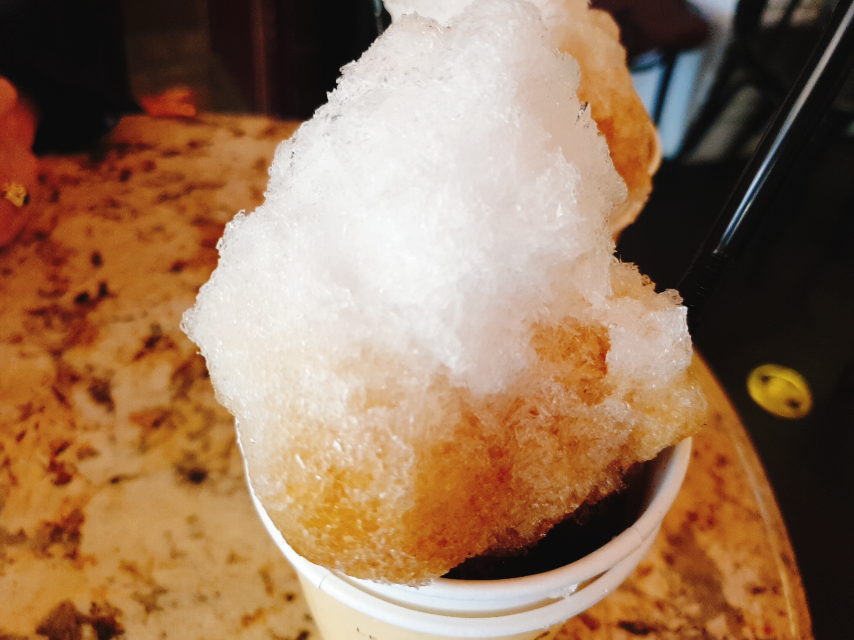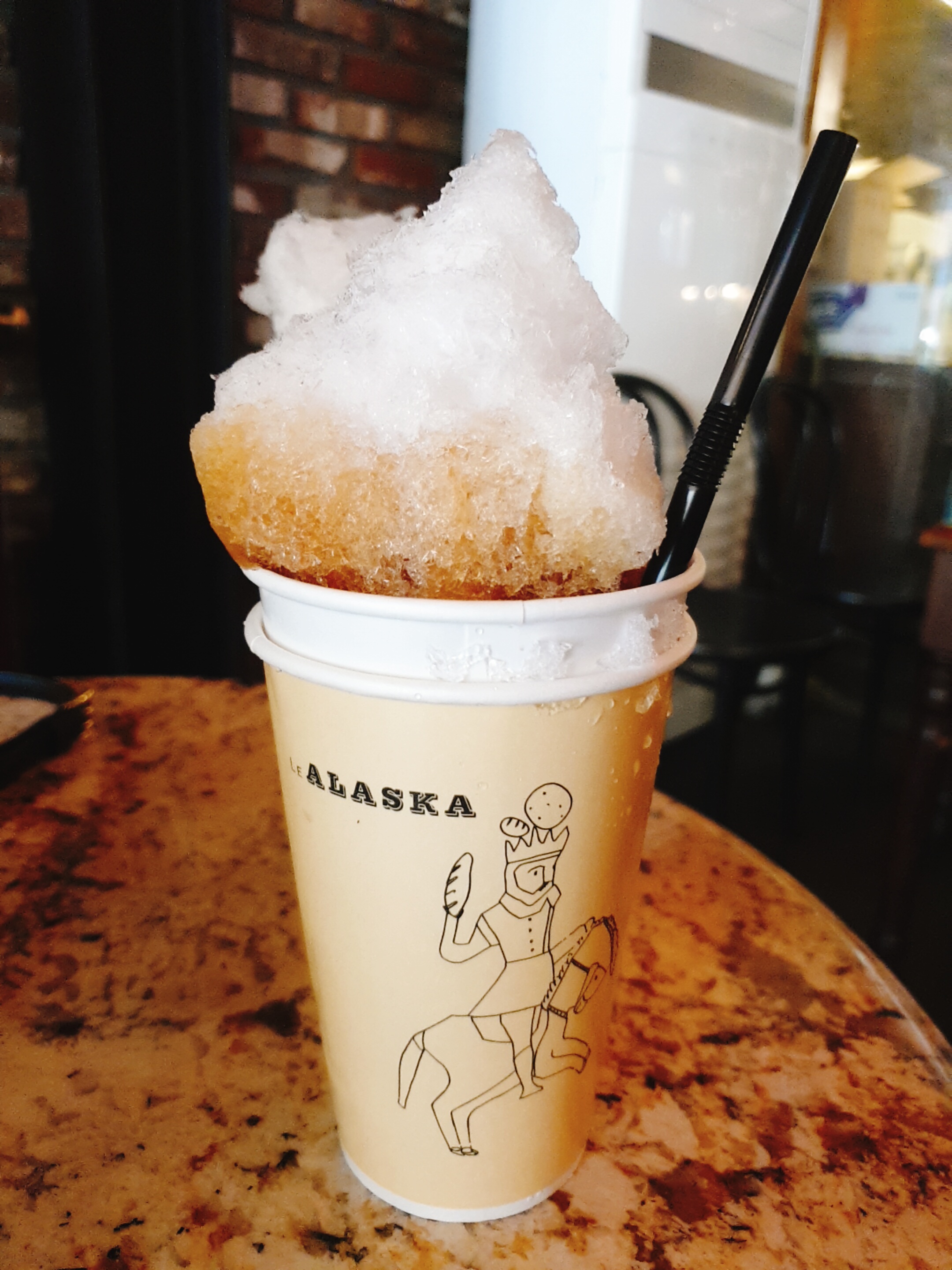 네 맞습니다. 위에 소복히 쌓인건 얼음입니다. 마치 팥빙수 같습니다. 각얼음이 들어있는 것만 봤지 이렇게 갈려있는 얼음이 올라간 커피는 처음 봤네요. 독특했습니다.
