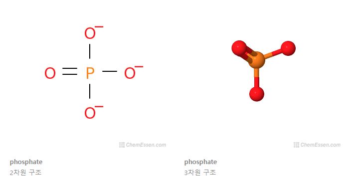 인산염(phosphate)이란 4개의 산소 원자 그리고 1개의 인 원자로 구성되어 총 5 개의 원자로 형성된 분자입니다. 간단히 말해서 인을 포함하는 화합물입니다. 인은 생명을 유지하는데 필수적인 원소입니다. 이 인은 보통 인산염의 상태에서 생명체들에게 유용하게 작용합니다.
