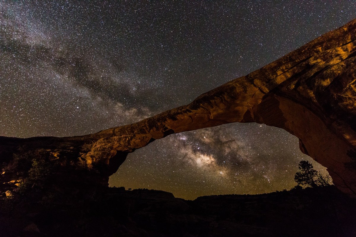미국 유타주에 있는 내츄럴 브릿지 국가기념물 준국립공원은 많은 사진 작가들이 애착을 가진 장소입니다. 자연적으로 풍화작용에 의해 만들어진 다리와 깨끗한 하늘이 선사하는 밤하늘 은하수를 함께 본다면 그 신비로움에 전율하게 될 것 같습니다.