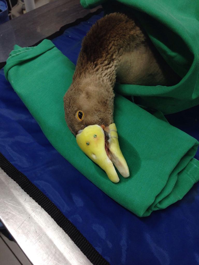 ▲동물 구조대에게 구조된 이 거위는 발견 당시 부리의 대부분이 없어진 상태였습니다. 왜 이런 모습이 되었는지는 알지 못하지만 분명 이대로 놔두면 먹이를 먹지 못해 죽을 것이 뻔합니다. 그런 거위에게 3D 프린터로 만든 멋진 부리를 선물해 주었습니다.