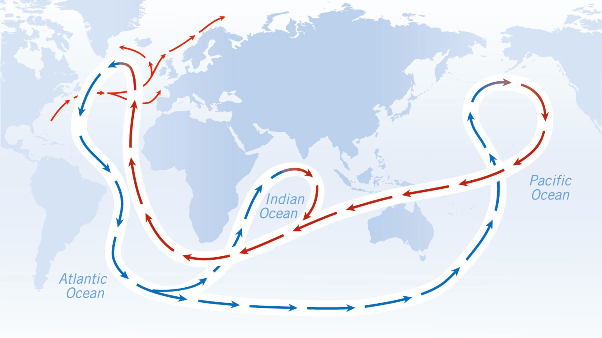 기본적으로 지구는 바다 해류를 통해 지구의 온도를 조절하고 있습니다. 해류는 해수면에 부는 바람으로도 발생하지만 주로 바닷물의 온도, 염분 차이로 일어나며 대기의 순환과 함께 지구의 기후를 조절하는 중요한 역할을 합니다. 더운 지역에는 극지방의 차가운 바다물을 보내어 식히고 더워진 바다는 다시 극지방으로 이동하여 식히는 과정을 통해 지구 온도를 조절합니다.