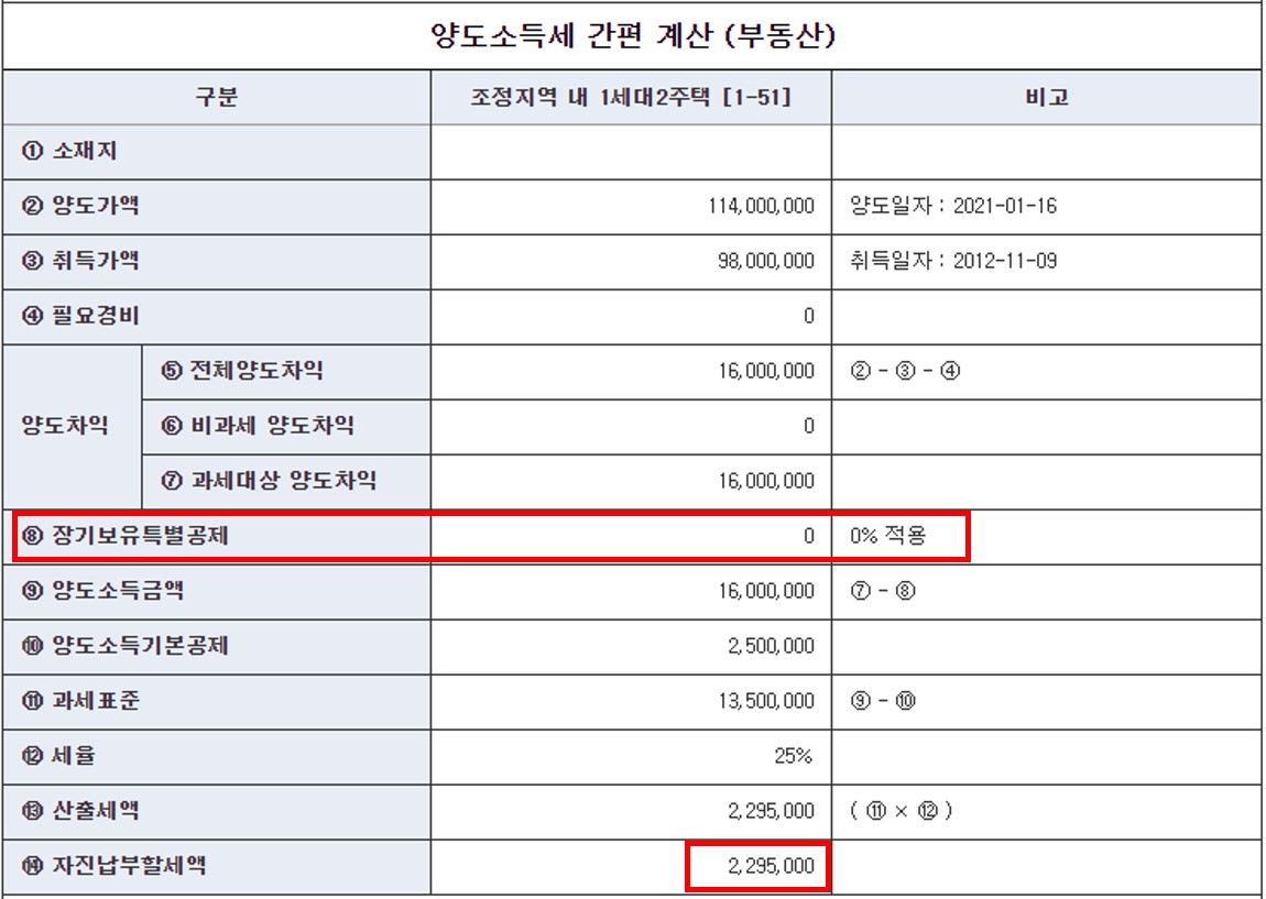 특히나 장기보유특별공제를 0% 적용받게 되면서 더욱 비용이커지는 듯 하였습니다. 이리저리 검색을 해보니 조정대상지역내 아파트같은 주택을 양도할 경우 만약 다주택자에 해당한다면, 양도소득세 중과세율이 적용됩니다. 그리고 장기보유특별공제 적용이 배제되는 듯 합니다. 양도 당시 2주택인상태에서 양도하는 경우 기본세율에 10% 가산되는 것이 납부 양도소득세가 커지는 역할을 하는 거 같습니다.