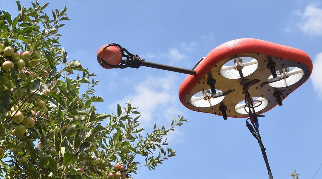 이 비행 로봇은 AI 알고리즘을 이용해 과일에 접근해 잘 익은 과일만을 선택하여 가장 안전한 방법으로 과일을 수학합니다. 수학한 과일에 대한 데이터들은 모두 수집되어 농장주에게 전달됩니다. 이 드론은 결코 쉬는 법이 없습니다. 농장주는 더 이상 작업자들이 제대로 수확하고 있는지 걱정할 필요도 없고 생산성도 높일 수 있습니다.