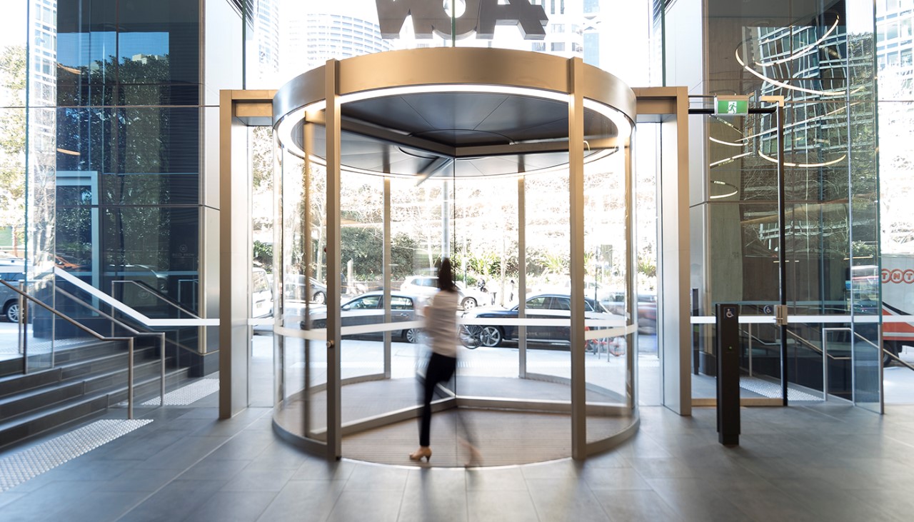 회전문도 방풍실과 같은 효과를 냅니다. 고층 건물 1층 로비로 들어가는 문에 회전문을 설치하는 이유는 고급스럽게 보이게 하는 이유보다는 연돌효과를 막기 위한 장치라고 봐야 합니다.