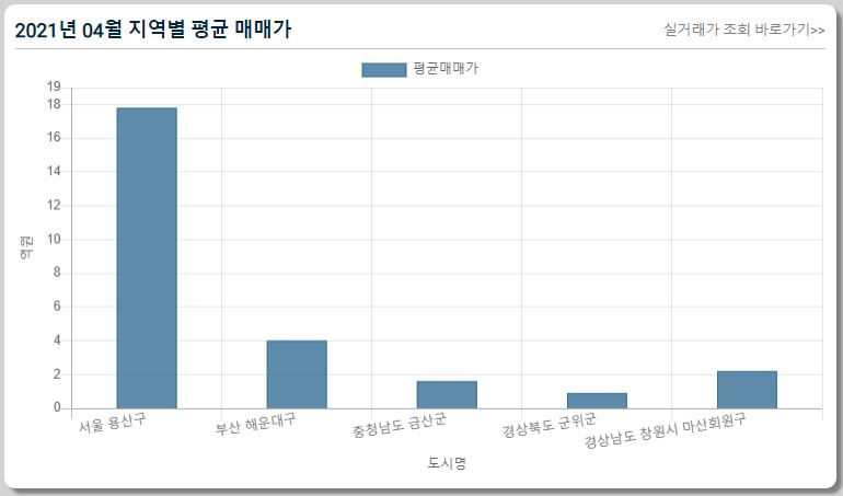 서울 용산구의 지난 4월 평균 매매가는 17.8억원이었고 부산 해운대구의 4월 평균 매매가는 4억원이었습니다. 물론 매매된 집을 기준으로 한 것이라 해당 지역의 평균 부동산 가격이라고 말할 수는 없습니다. 그저 지난달의 해당 지역에서 이루어진 매매가들을 보여주는 것입니다.