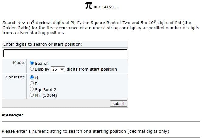 Irrational Numbers Search Engine(http://www.subidiom.com/pi/)