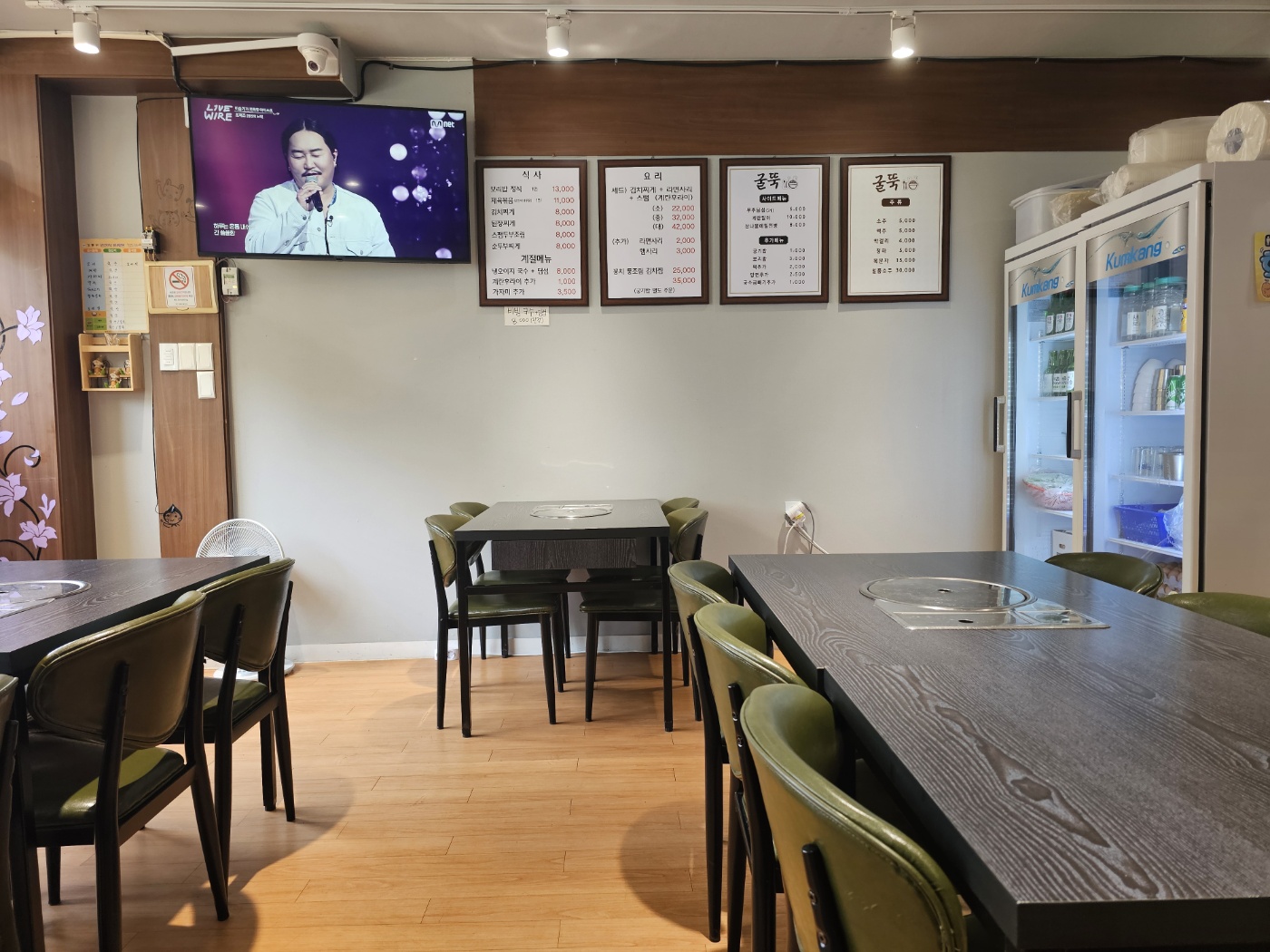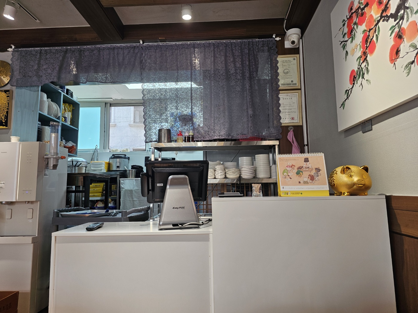 주문하고 가게를 둘러보니 작지만 너무 깔금했습니다. 백종원 때문에 저도 식당을 볼 때 청결 상태를 우선적으로 보게 되었습니다. 깨끗하게 관리된 식당이 맛도 괜찮다는 걸 경험으로 알고 있습니다. 테이블이나 바닥이 걸리는 것 없이 청소가 잘 되어 있었습니다.